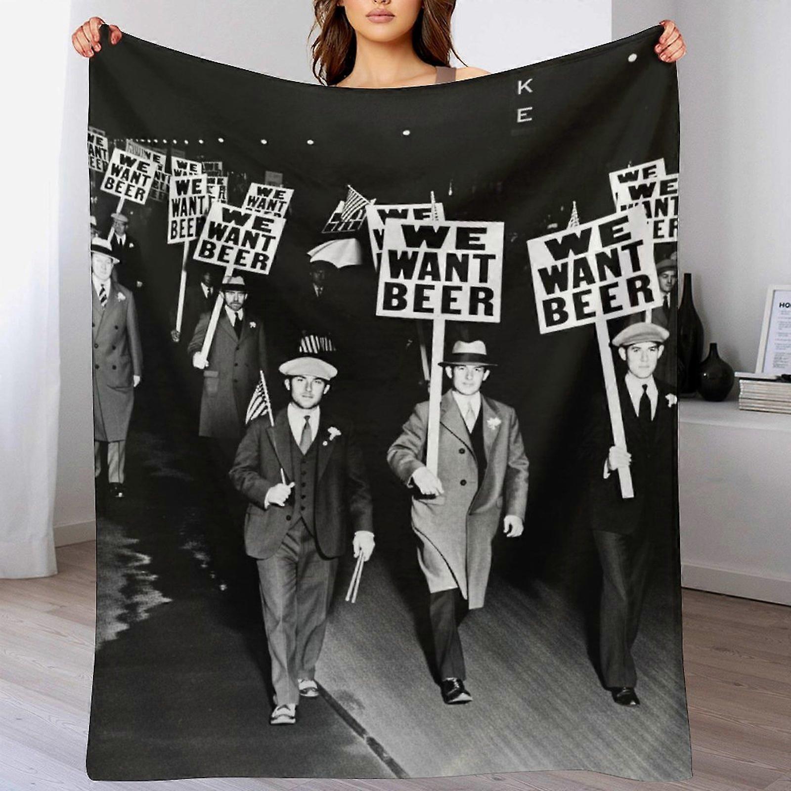 Vintage Black & White "We Want Beer" Protest Print Flannel Blanket - Cozy Throw for Living Room | Fun Gift for Beer Lovers