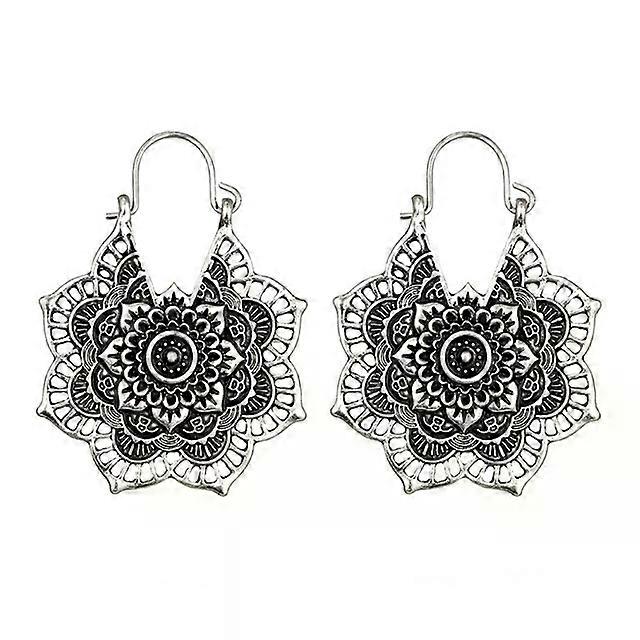 Vintage Bohemian Metal Flower Earrings-Openwork Carved Design,Silver silver