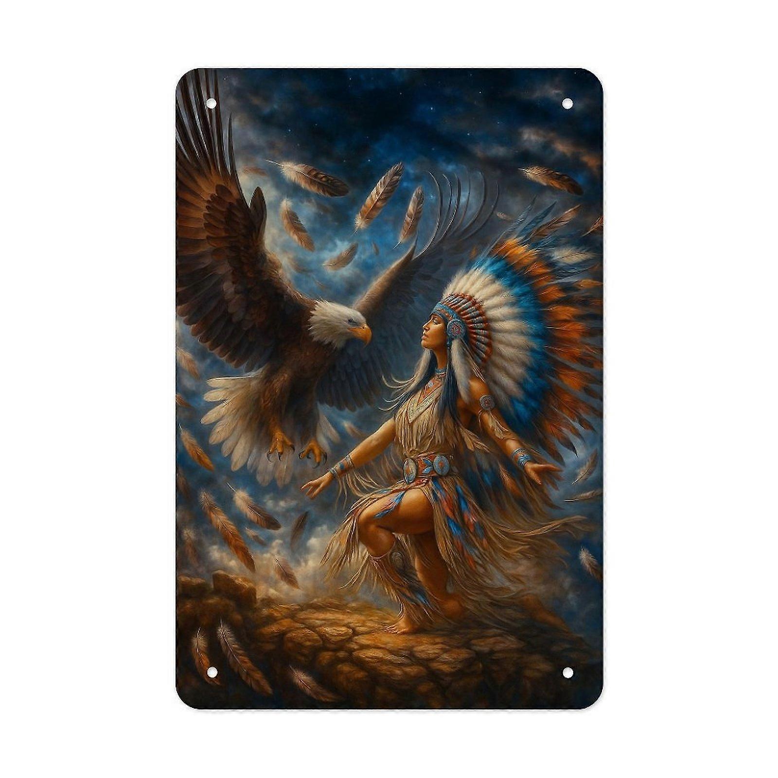 Vintage Eagle Dance Woman Metal Tin Sign – Spiritual Freedom Fantasy Art Wall Decor, Retro Home Wall Plaque