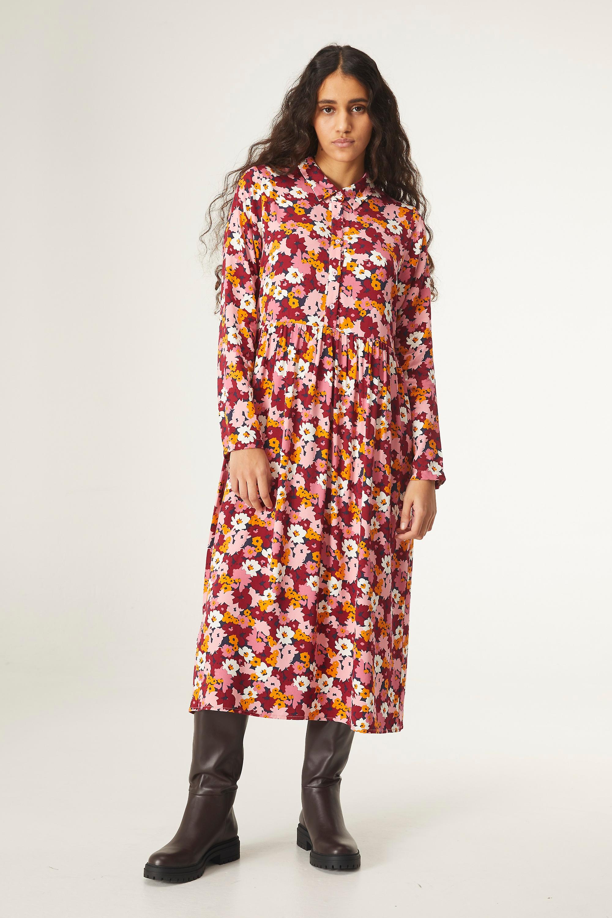 Vintage floral print midi shirt dress with long sleeves by Compania Fantastica