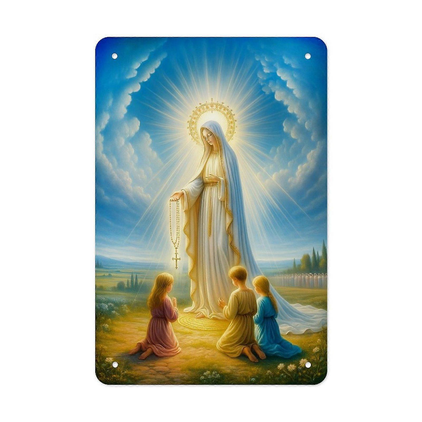 Vintage Sacred Mother & Children Metal Tin Sign – Spiritual Art Wall Decor for Home, Prayer Room, Gift