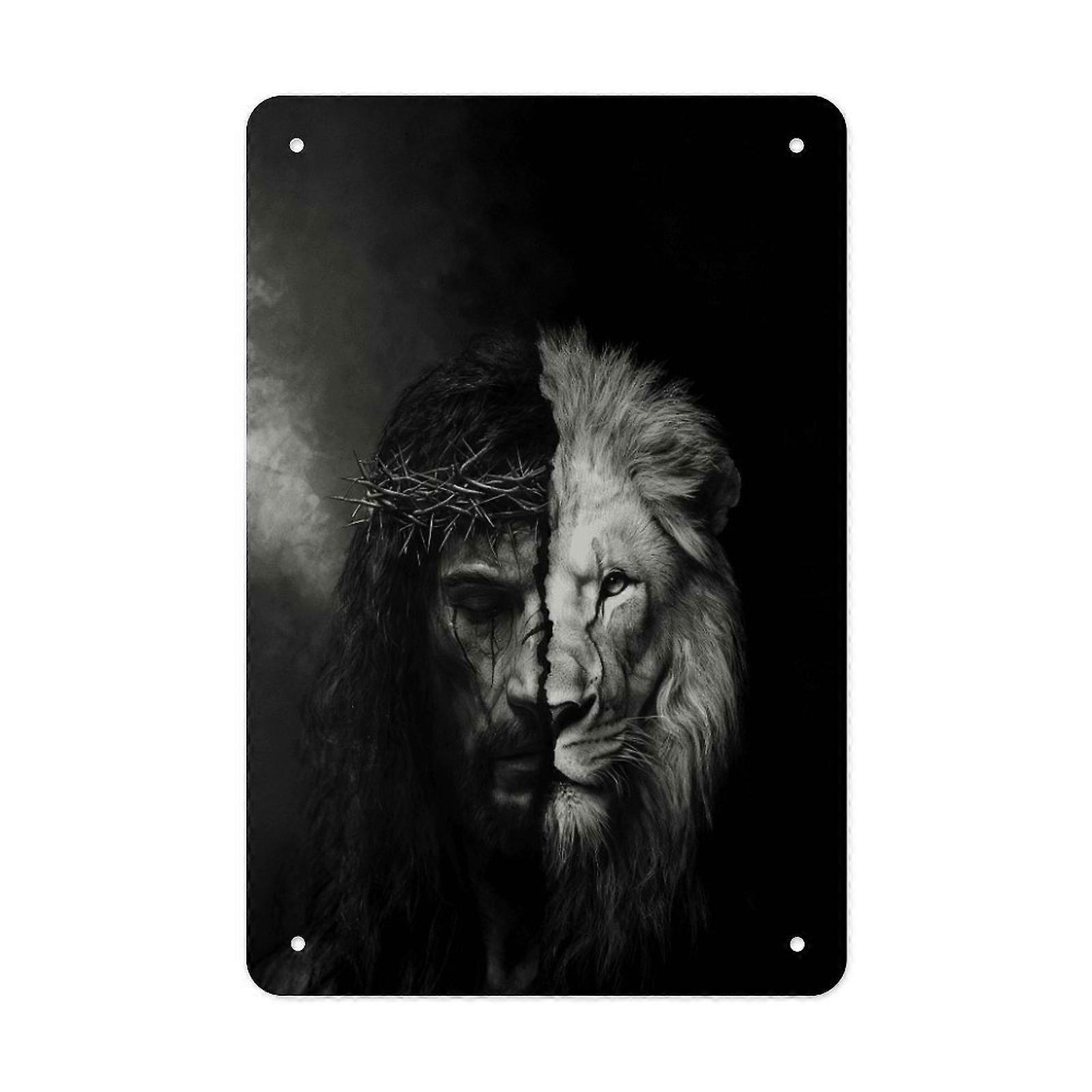 Vintage Spiritual Lion Man Metal Tin Sign – Black White Symbolic Art Wall Decor, Retro Inspirational Home Bar Plaque