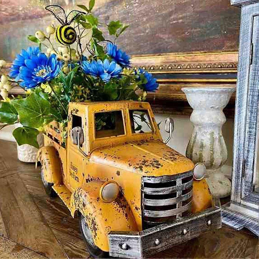 Vintage Yellow Farmhouse Decoration Trucks Metal Trucks Plant Garden Pickup Retro Trucks Seasons Decoration Decor Tabletop Storage