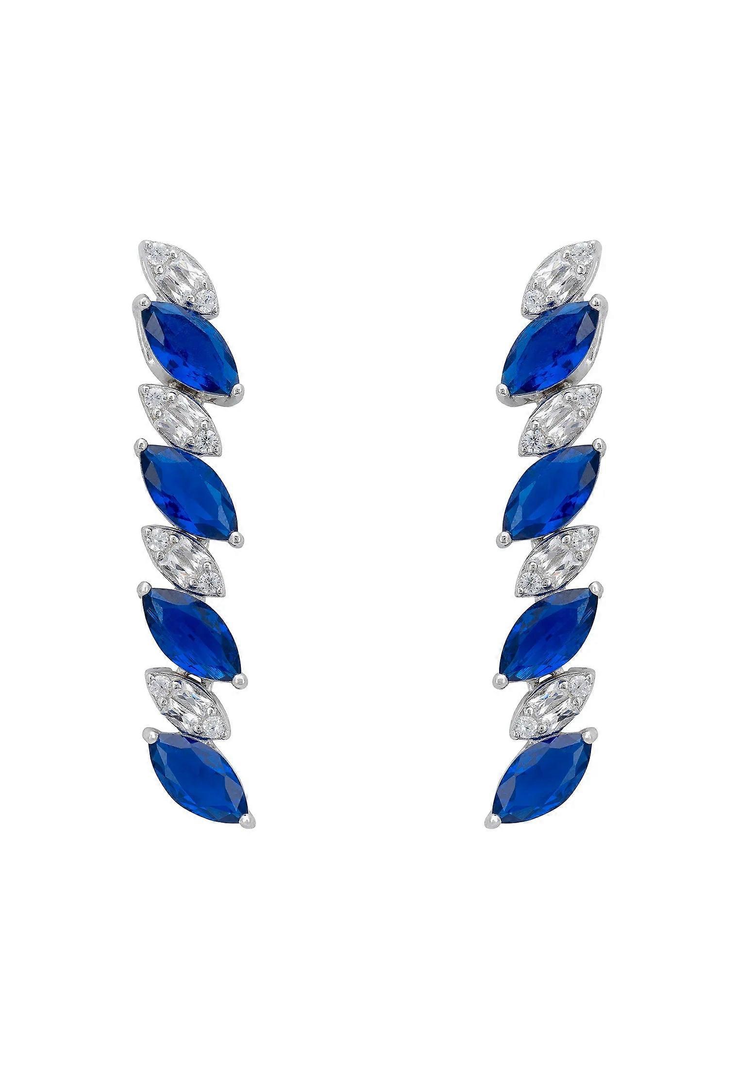 Viscountess Tennis Drop Earrings Sapphire Silver for Women, 925 Sterling Silver, Lab-Grown Sapphires, Simulated Diamonds