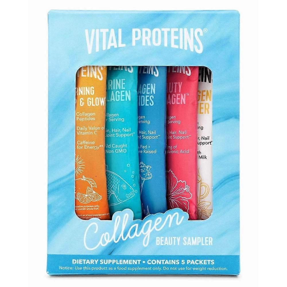 Take your glow, on the go with Vital Proteins Collagen Beauty Sampler. Features 1 Stick Pack of:• Morning Get Up & Glow• Marine Collagen• Collagen Peptides• Beauty Collagen, Tropical Hibiscus• Collagen Creamer, VanillaThese statements have not been evaluated by the Food and Drug Administration. This product is not intended to diagnose, treat, cure, or prevent any disease