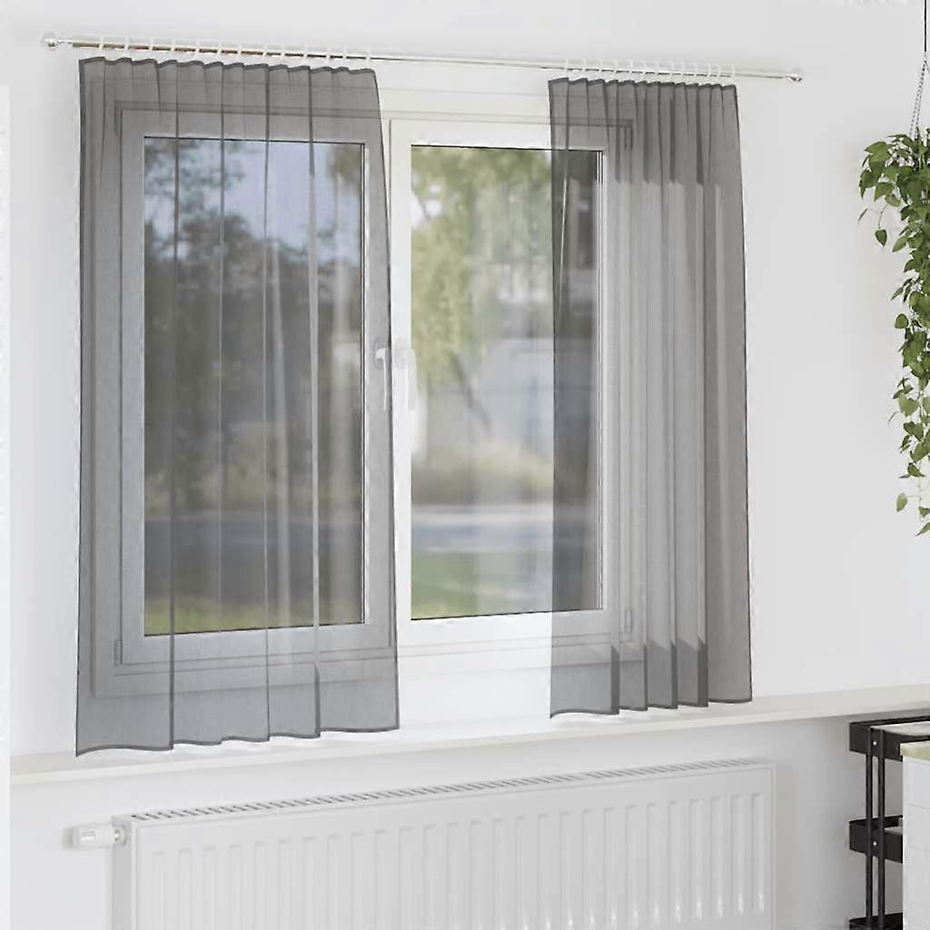 Voile Vorhänge mit Stangentaschen 2 Stk. Dunkelgrau