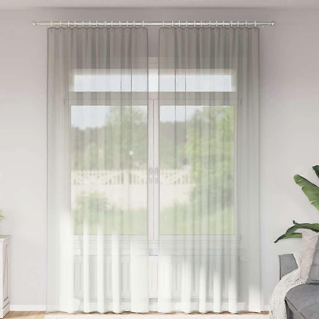 Genieße mit diesen Voile-Vorhängen einen gut beleuchteten Raum ohne grelles Licht. Langlebiges Material: Der Vorhang besteht zu 100 % aus Polyester und ist daher strapazierfähig und langlebig.Semi-transparentes Design: Die Gardine lässt frische Luft herein und blockiert bis zu einem gewissen Grad das Sonnenlicht. Sie bietet ein gemütliches Gefühl und schirmt deinen Raum vor neugierigen Blicken ab.Leicht zu hängende Stangentasche: Das Vorhangpaneel ist mit Stangentaschen an der Oberseite ausgestattet, die eine einfache Montage und eine reibungslose Bewegung an den Vorhangstangen ermöglichen.Vielseitig einsetzbar: Der durchsichtige Vorhang eignet sich perfekt, um ihn mit schwereren Vorhängen zu kombinieren oder allein für einen frischen, minimalistischen Look zu verwenden.Waschbar: Der Vorhang ist bei niedriger Temperatur waschbar und daher pflegeleicht. Gut zu wissen:Die Vorhangstange ist nicht im Lieferumfang enthalten. Farbe: HellgrauMaterial: Stoff (100% Polyester)Größe: 140 x 260 cm (B x H)Durchmesser der Stangentasche: 7 cmLieferung umfasst:2 x Voile Vorhang
