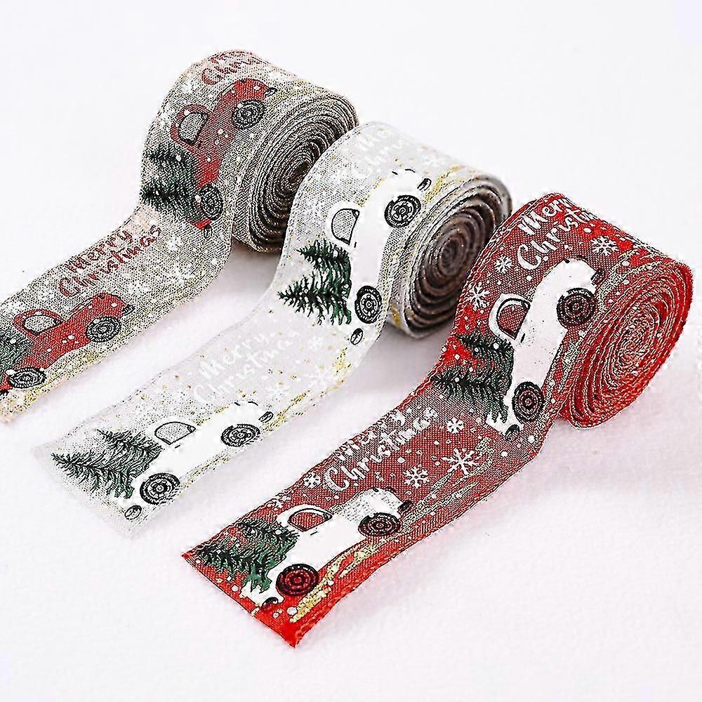 Wabjtam 3 Rolls Christmas Ribbon 2 Inch X 5 Yards Christmas Tree And Truck Wired Ribbon Wrapping Ribbon For Diy Gift Wreaths Wrapping