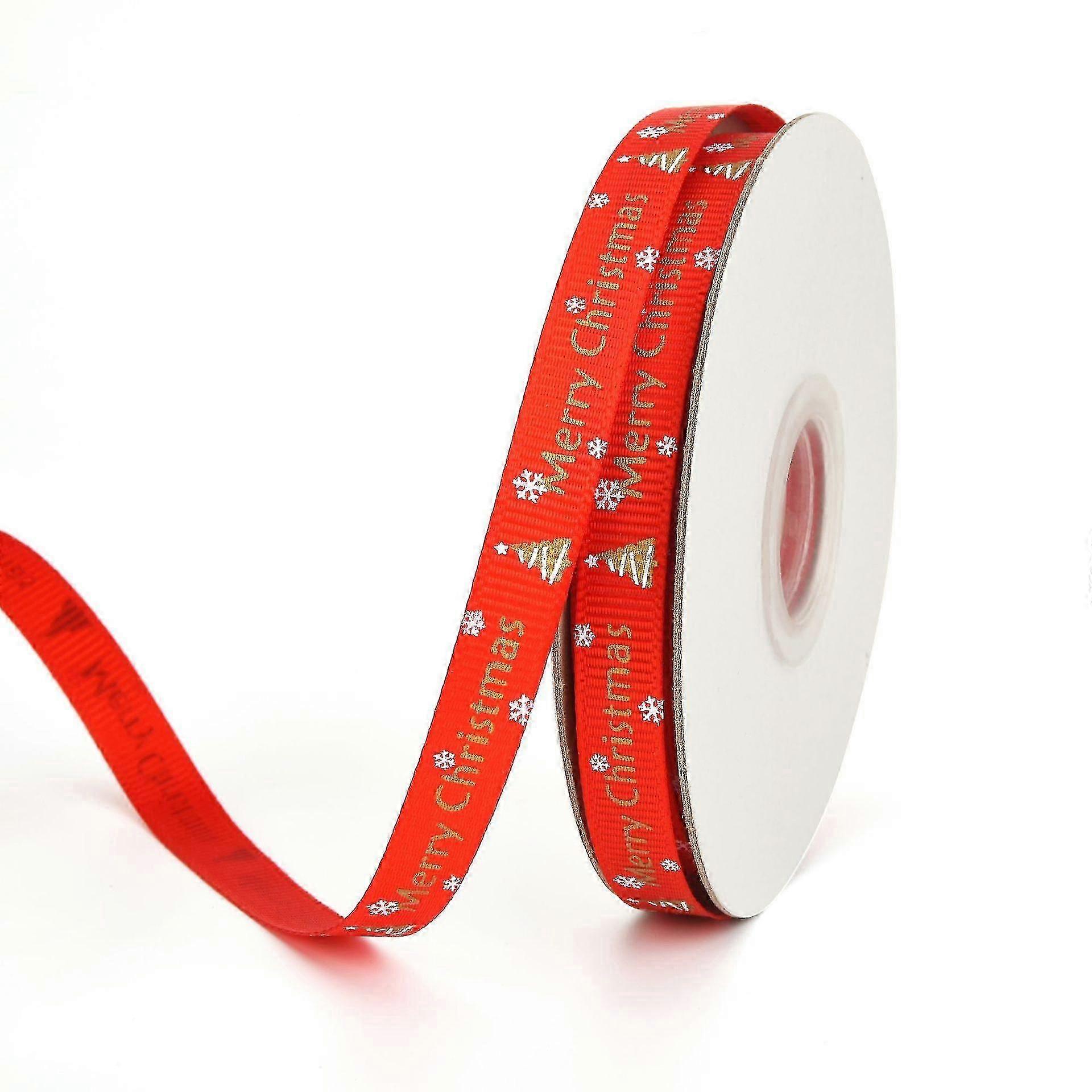 Wabjtam 4pcs Christmas Print Ribbon 1cm Wide Ribbon Christmas Tree Decorationred