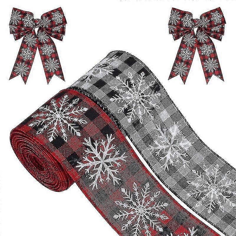 Wabjtam Christmas Ribbon, Merry Christmas Red Buffalo Plaid Ribbon With Garland Diy Crafts 2pcs
