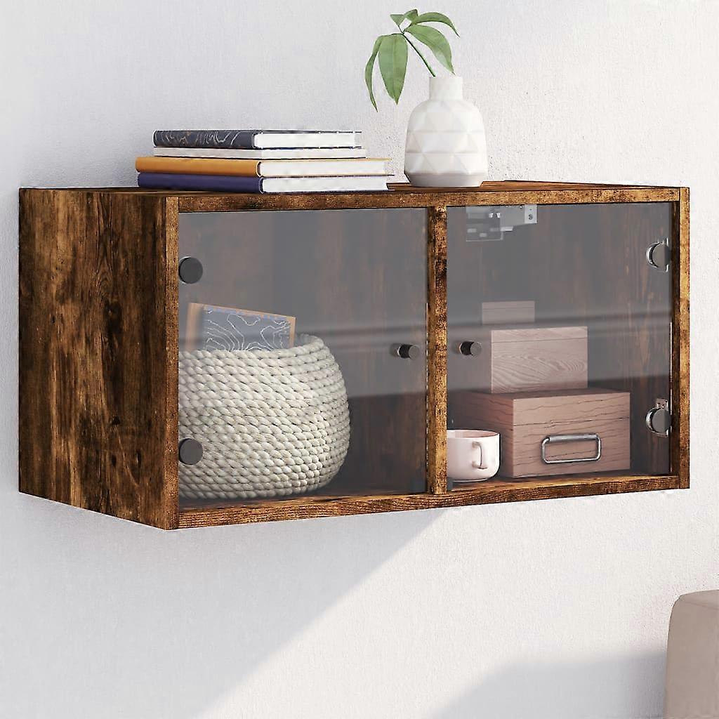 Wandschrank mit Glastüren Räuchereiche 68,5x37x35 cm