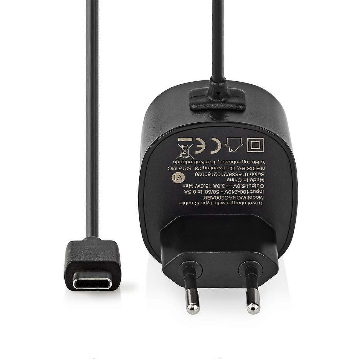 Väggladdare | 15 W | Snabbladdnings funktion | 1x 3.0 A | Antal utgångar: 1 | USB-C™ (Fast) Kabel |