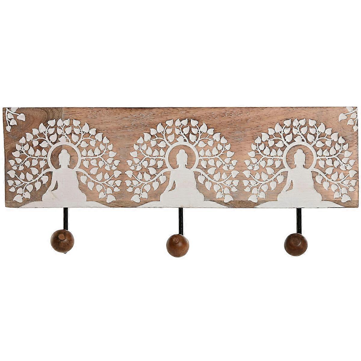 Wandgarderobe Home ESPRIT Weiß Schwarz natürlich Metall Mango-Holz Buddha 38 x 5 x 16 cm