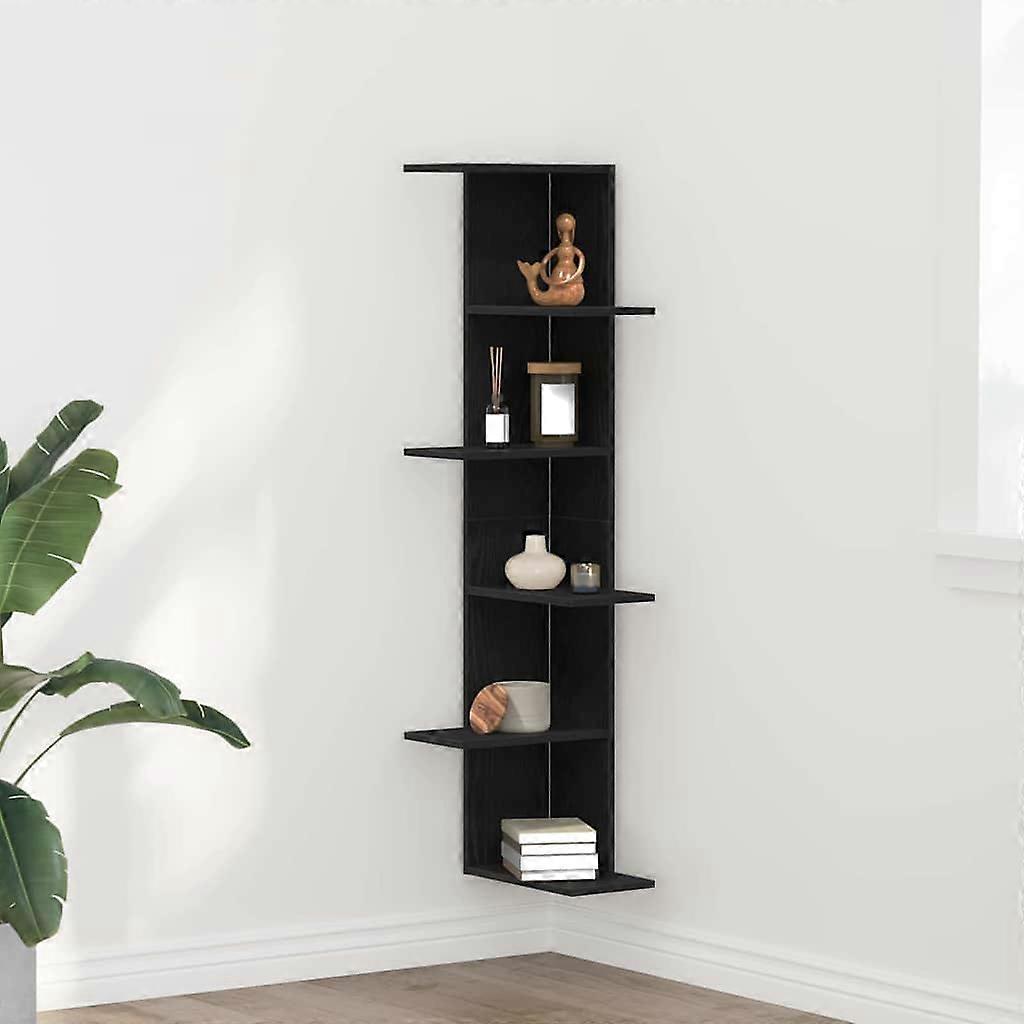 Wand-Eckregal Schwarz Eichen-Optik 36,5 x 36,5 x 140 cm