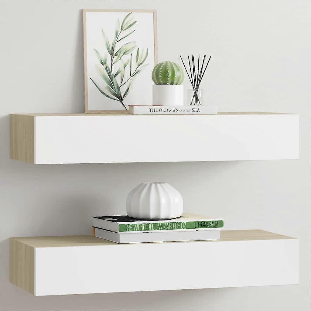 Wandschubladenregale 2 Stk. Eiche und Weiß 60x23,5x10cm MDF