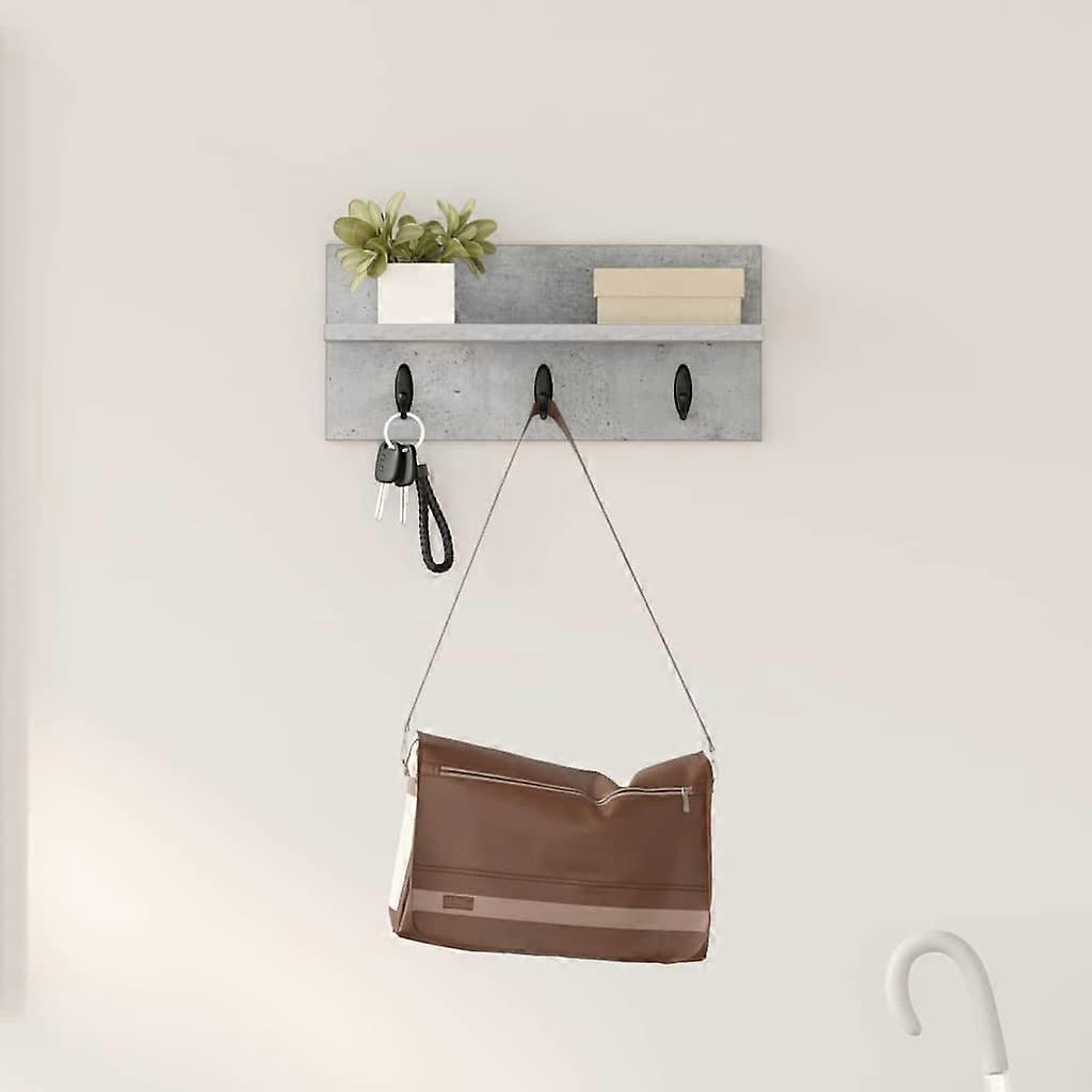 Farbe: Beton GrauMaterial: HolzwerkstoffGesamtabmessungen: 40 x 10,5 x 18 cm (L x B x H)Gewicht: 0,08 kgHakenNur für den InnenbereichLieferumfang:1 x WandgarderobeMontage erforderlich: Ja