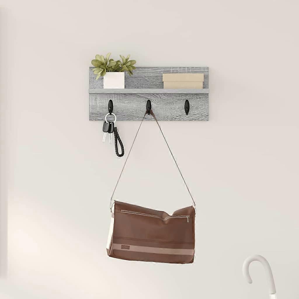 Farbe: Graues SonomaMaterial: HolzwerkstoffGesamtabmessungen: 40 x 10,5 x 18 cm (L x B x H)Gewicht: 0,08 kgHakenNur für den InnenbereichLieferumfang:1 x WandgarderobeMontage erforderlich: Ja