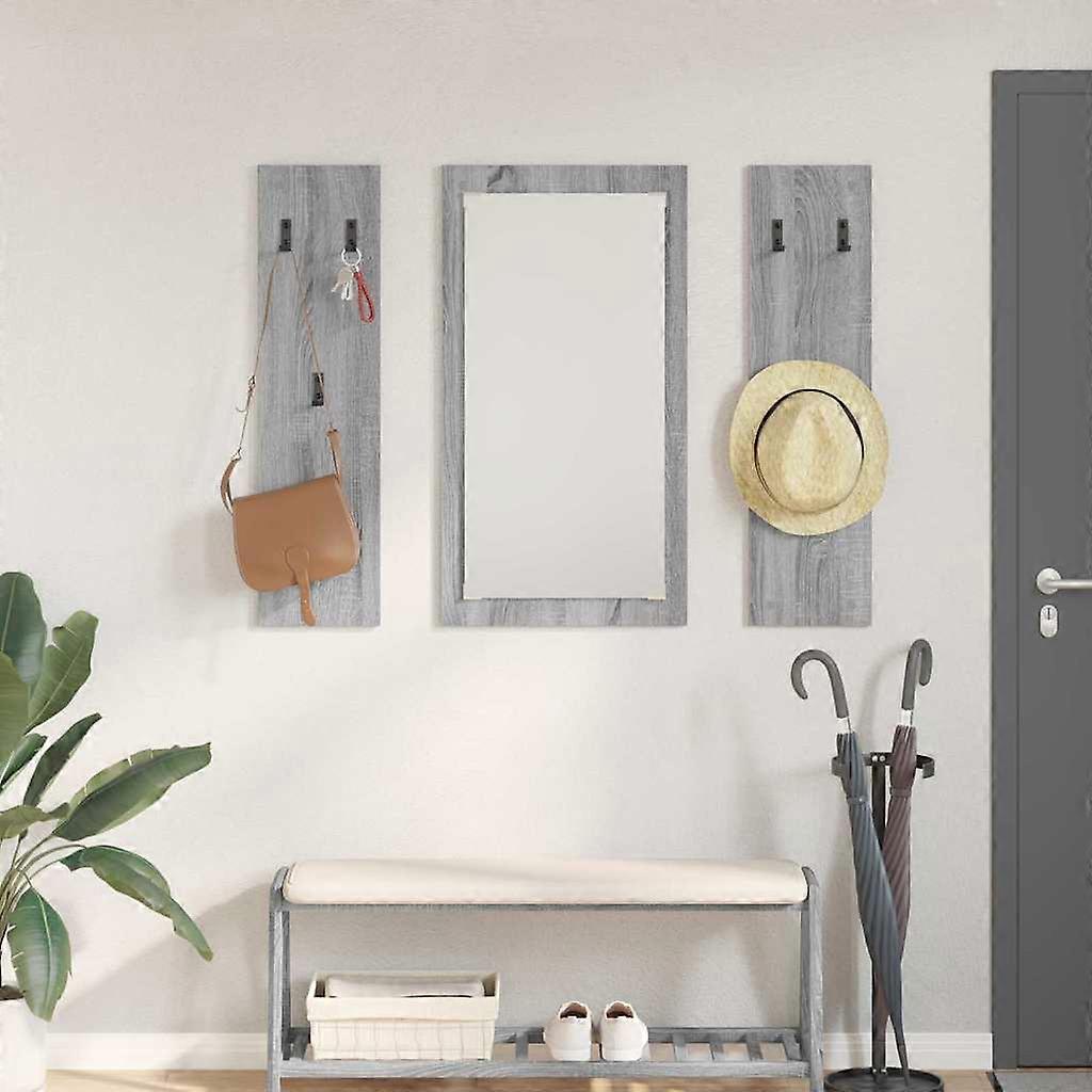 Dieser stylische, wandmontierte Garderobenständer ist eine echte Aufbewahrungslösung, bei der Design und Funktion auf eine moderne und minimalistische Art zusammenkommen. Hergestellt aus schickem Holzwerkstoff, ist er perfekt für die Organisation und die Neugestaltung deines Flurs. Ob umhüllt von Mänteln, Hüten oder Accessoires, der Ständer sieht toll aus und bringt einen zeitgenössischen Charme mit. Holzwerkstoff-Konstruktion: Der Garderobenständer ist aus Holzwerkstoff gemacht, der robust und gleichzeitig attraktiv ist. Er ist so gestaltet, dass er lange hält, verzieht sich nicht und behält seinen modernen Look ? ein echter Hingucker in deinem Flur Multifunktionale Aufbewahrungslösung: Der Ständer hat integrierte Regale, die dir helfen, Hüte, Taschen und andere Sachen zu verstauen. Diese Funktionalität ist ideal für jeden Haushalt, der mehr Stauraum braucht. Stabile und sichere Wandmontage: Mit einem starken Montagesystem und drei Befestigungspunkten kannst du diesen Garderobenständer sicher an deiner Wand anbringen. So bleibt alles stabil, und du kannst mehrere Dinge ohne Sorge aufhängen. Platzsparende Innovation: Dank des wandmontierten Designs nutzt du den verfügbaren Platz optimal. Es schafft mehr Bodenfläche und sieht schlank aus ? perfekt für kleine oder engere Bereiche. Minimalistischer Montageprozess: Der Aufbau ist einfach und benötigt nur zwei Personen und einen Schraubendreher. Mit klaren Anweisungen ist es super leicht, den Garderobenständer zu installieren, sodass du seinen Nutzen ohne Stress genießen kannst. Farbe: Graues SonomaMaterial: HolzwerkstoffGesamtabmessungen: 96 x 1,5 x 90 cm (L x B x H)Gewicht: 13,38 kgStauraumStabilmit SpiegelNur für den InnenbereichLieferumfang:1 x WandgarderobeMontage erforderlich: Ja