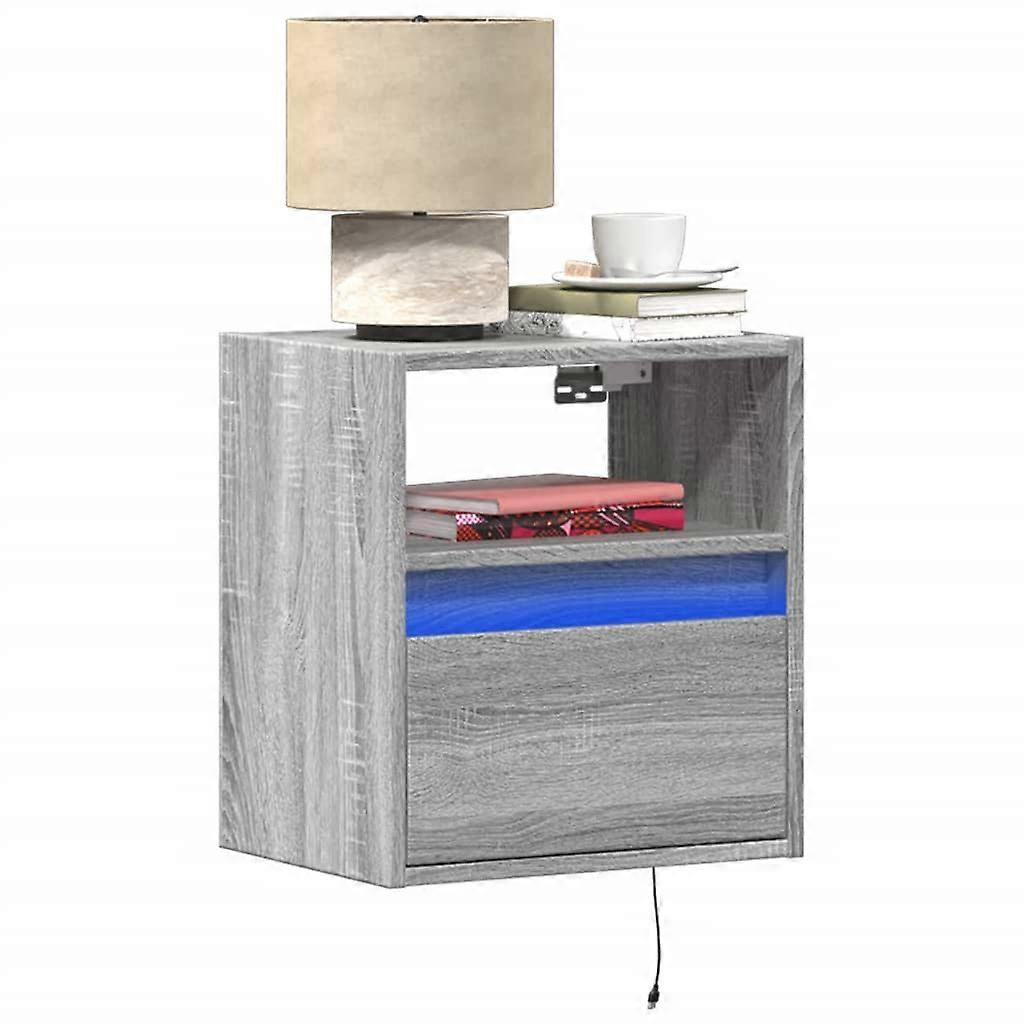 Wand-Nachttisch mit LED-Leuchten Grau Sonoma