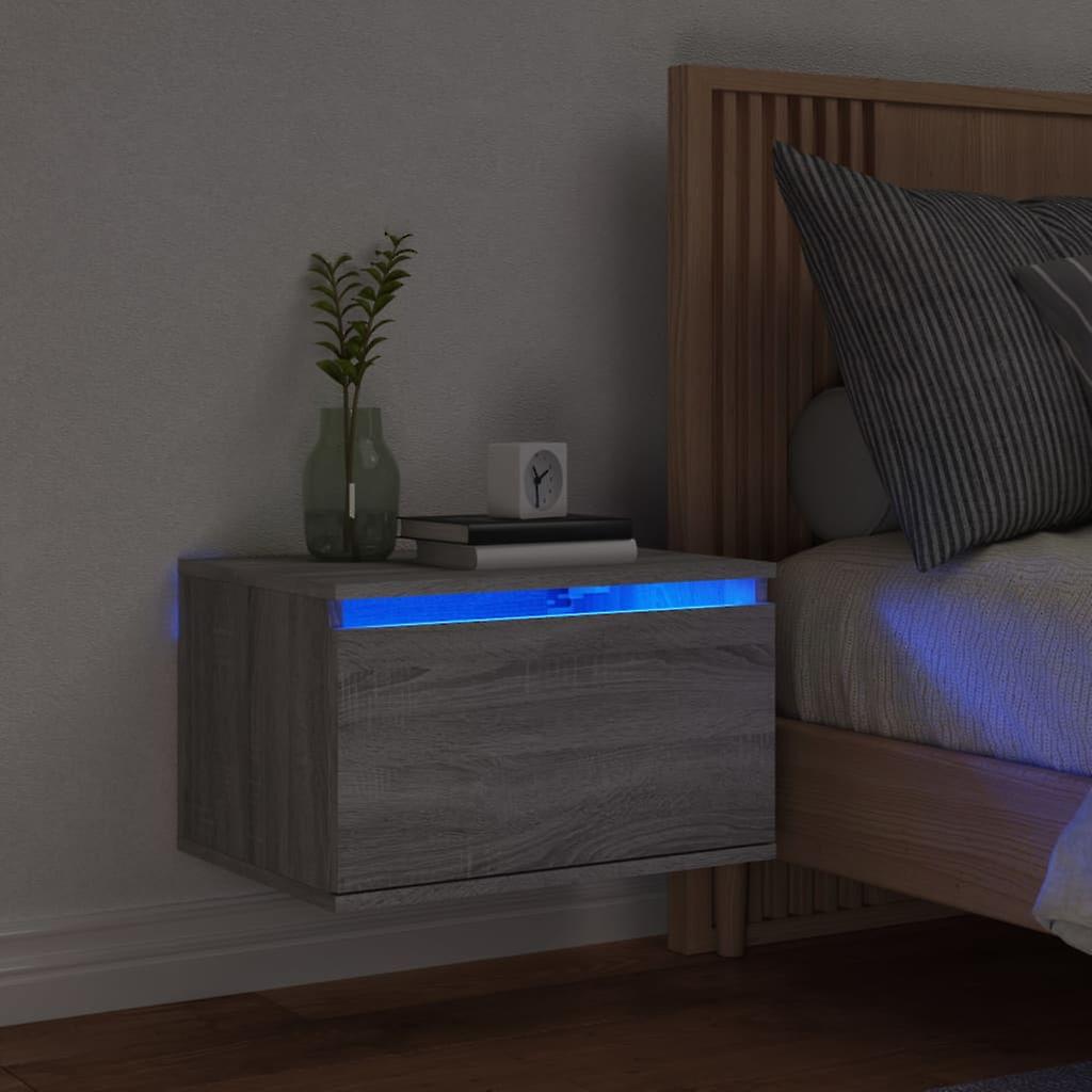Wand-Nachttisch mit LED-Leuchten Grau Sonoma