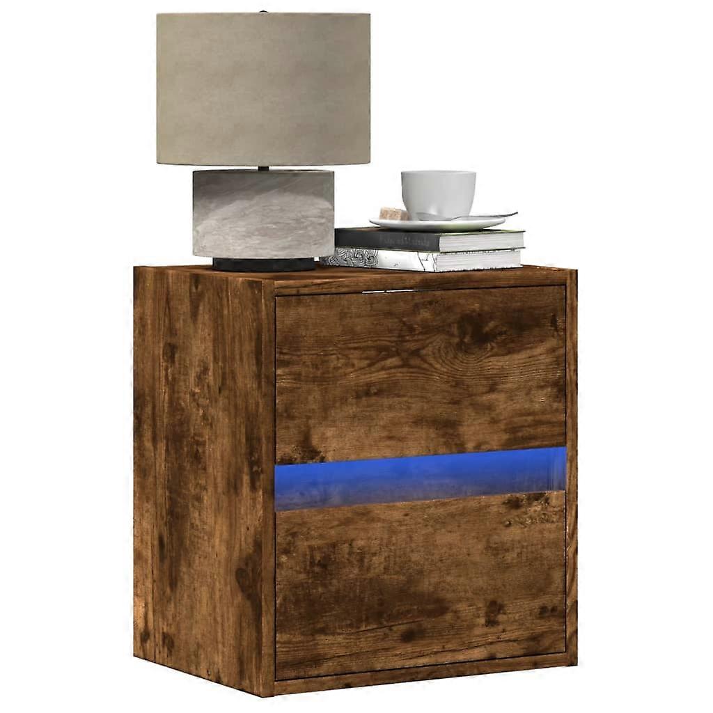 Wand-Nachttisch mit LED-Leuchten Räuchereiche