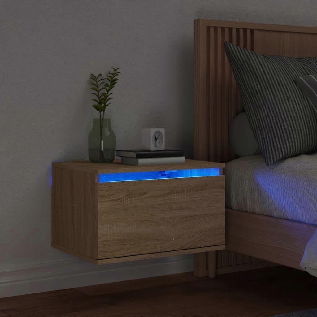 Wand-Nachttisch mit LED-Leuchten Sonoma-Eiche