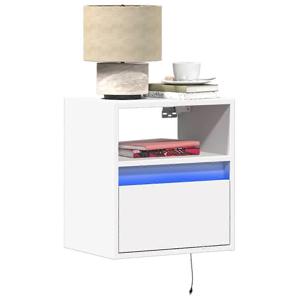 Starkes und langlebiges Material: Holzwerkstoff ist ein langlebiges und robustes Material mit einer glatten Oberfläche, das gegen Feuchtigkeit, Verformung und Rissbildung beständig ist, wodurch es eine zuverlässigen Wahl für die Herstellung von Möbeln ist.RGB-LED-Beleuchtung für ein angenehmes Ambiente: Dieser Nachttisch verfügt über LED-Leuchten, die einfach eingestellt werden können, um eine personalisierte Lichtshow zu erzeugen. Du kannst die Modi, Farben und Helligkeit anpassen, um das Ambiente in deinem Wohnraum zu verbessern.Ausreichend Stauraum: Dieser Nachttisch hat 1 Schublade und 1 Fach, die ausreichend Platz bieten, um deine Zeitschriften, Bücher, Fernbedienungen und andere kleine Gegenstände gut organisiert und in Reichweite aufzubewahren.Platzsparend: Das Design maximiert den ungenutzten Platz an der Wand und verwandelt den Nachtschrank in ein kompaktes Aufbewahrungsmöbel. Gut zu wissen:Schrauben und Dübel sind für die Befestigung an der Wand nicht im Lieferumfang enthalten. Wir empfehlen dir, speziell für deine Wände geeignete Schrauben und Dübel zu finden und zu verwenden. Im Zweifelsfall wende dich an einen Fachmann. Bitte lese und befolge jeden Schritt der Anweisungen.Das Produkt verfügt über einen USB-Anschluss, für den eine zertifizierte 5V-USB-Stromquelle erforderlich ist (nicht im Lieferumfang enthalten).