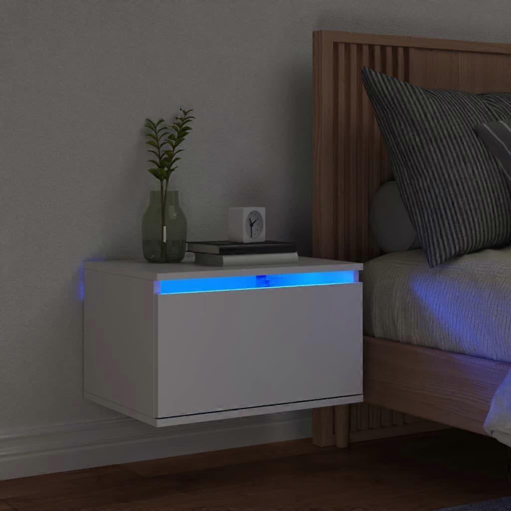 Wand-Nachttisch mit LED-Leuchten Weiß