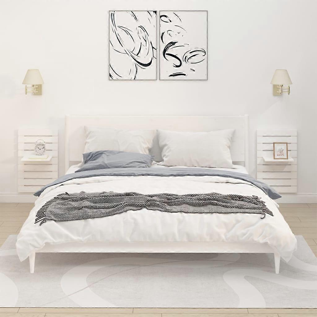 Wand-Nachttische 2 Stk. Weiß Massivholz Kiefer