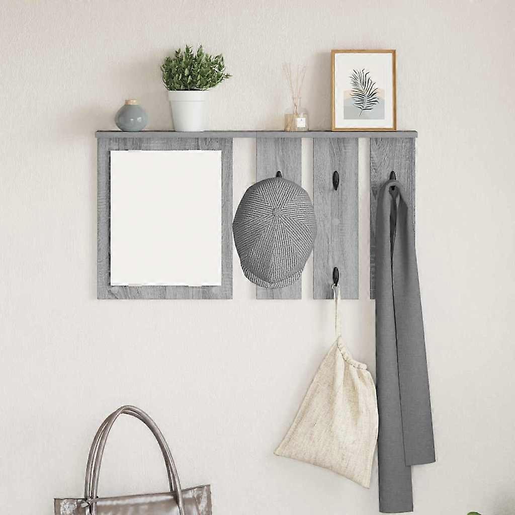 Farbe: Grau SonomaMaterial: HolzwerkstoffGesamtabmessungen: 85 x 10 x 45 cm (B x T x H)Gewicht: 5,2 kgHakenmit Spiegelmit 1 RegalRahmenmaterial: HolzwerkstoffInnen- / Außenbereich: Nur für den InnenbereichLieferumfang:1 x Wandmontierter KleiderständerMontage erforderlich: Ja