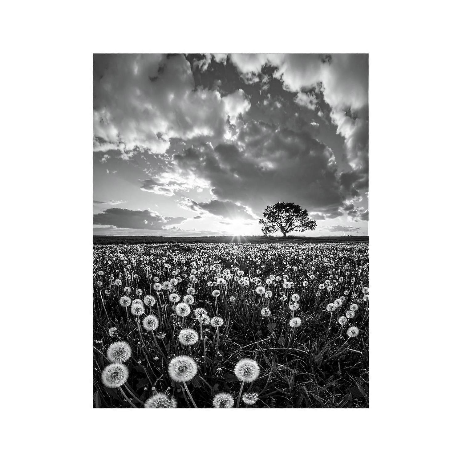 Wandbild Löwenzahnwiese Schwarz Weiss 2