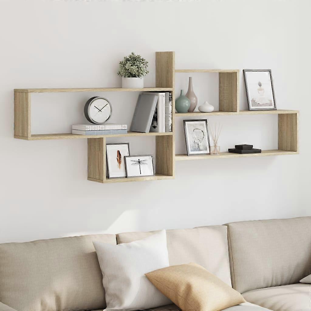 Nutze den vorhandenen Platz aus und verwandle deine Wand mit diesem Wandregal in einen stylischen Hingucker Starkes und langlebiges Material: Holzwerkstoff ist ein langlebiges und robustes Material mit einer glatten Oberfläche, das gegen Feuchtigkeit, Verformung und Rissbildung beständig ist, wodurch es eine zuverlässigen Wahl für die Herstellung von Möbeln ist.Reichlich Stauraum: Dieses schwebende Wandregal bietet praktischen Stauraum, um die verschiedenen Dinge des täglichen Lebens gut organisiert und in Reichweite aufzubewahren.Platzsparend: Diese Regalwürfel können an der Wand befestigt werden, um zusätzlichen Stauraum zu schaffen. Auf diese Weise kannst du Platz auf dem Fußboden sparen und ihn sauber halten.Pflegeleicht: Dieses Wandregal ist leicht mit einem feuchten Tuch zu reinigen und erfordert wenig Pflege. Gut zu wissen:Schrauben und Dübel für die Montage an der Wand sind nicht enthalten. Passendes Montagezubehör muss separat gekauft werden. Wenn du dir bezüglich der Montage nicht sicher bist, wende dich bitte an einen Fachmann. Bitte lies und befolge jeden Schritt in der Anleitung. Farbe: Sonoma-EicheMaterial: HolzwerkstoffAbmessungen: 167,5 x 18 x 68 cm (B x T x H)Maximale Tragfähigkeit (insgesamt): 20 kgZusammenbau erforderlich: Ja