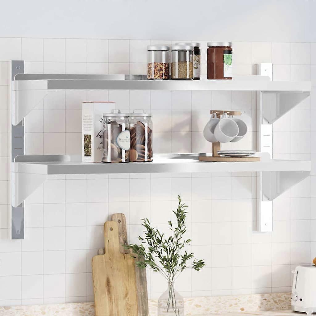 Wandregal mit 2 Böden 100x30x60 cm Silbern Edelstahl