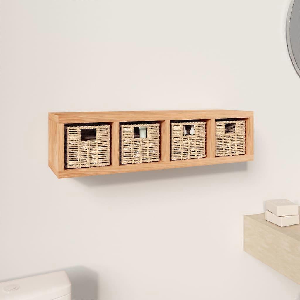Wandregal mit Körben 62x18x16 cm Massivholz Nussbaum