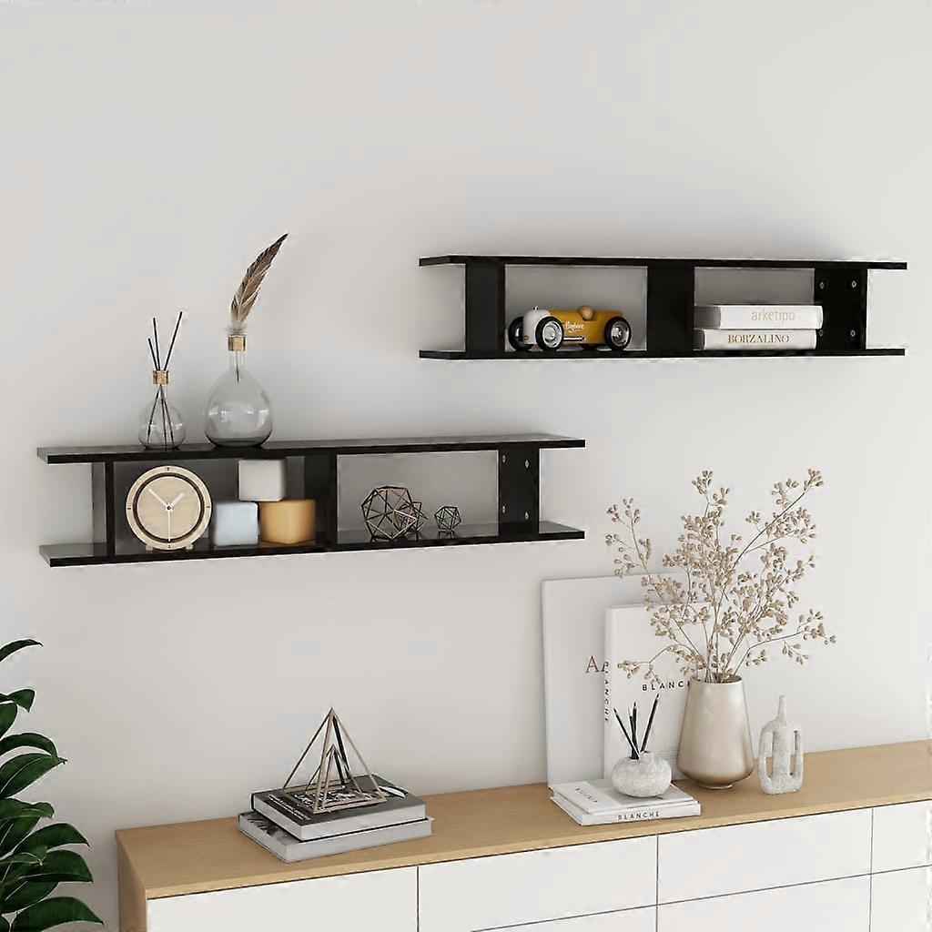 Wandregale 2 Stk. Schwarz 105x18x20 cm Holzwerkstoff