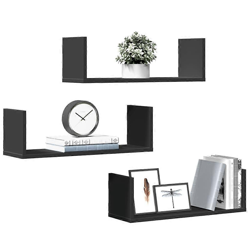Wandregale 3 Stk. Schwarz 58x18x18 cm Holzwerkstoff