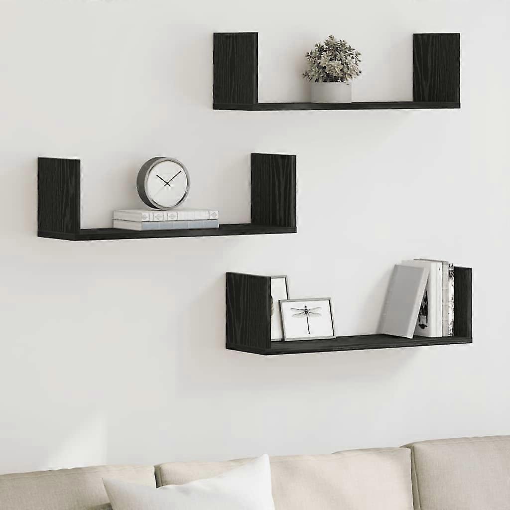 Wandregale 3 Stk. Schwarz Eichen-Optik 58x18x18cm Holzwerkstoff