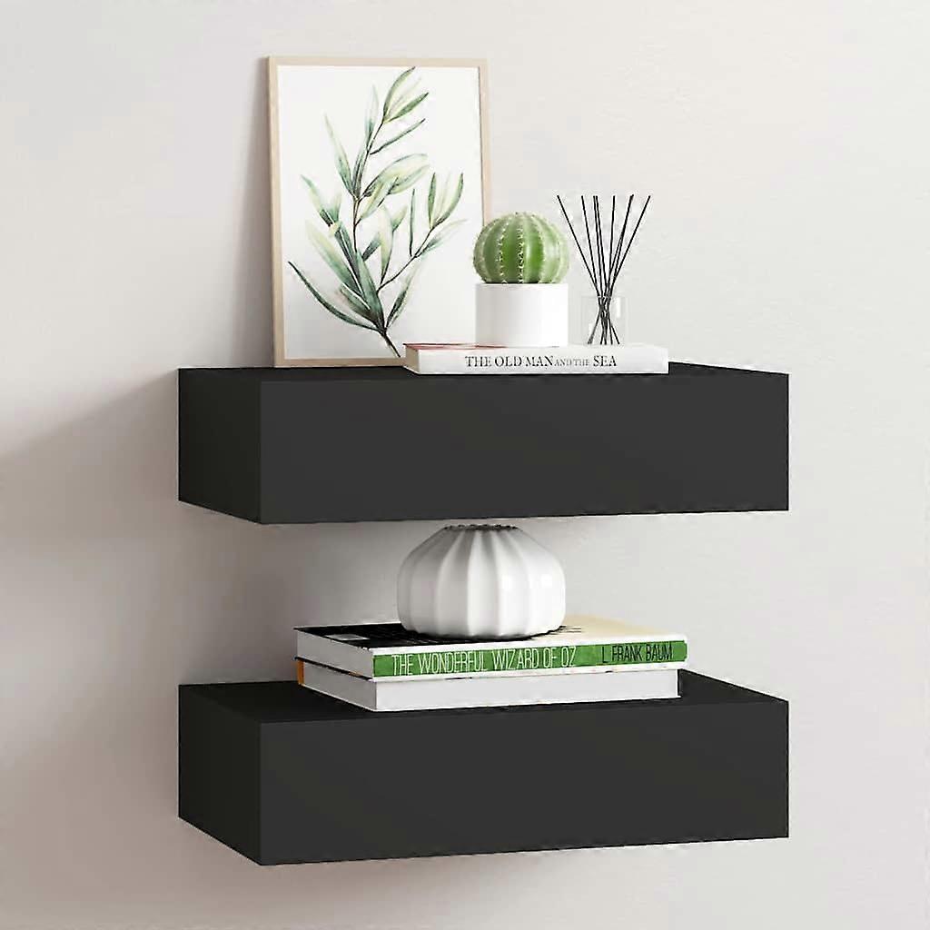 Wandregale mit Schubladen 2 Stk. Schwarz 40x23,5x10 cm MDF