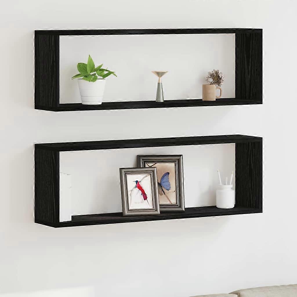 Wandregale mit Regal 2 pcs Schwarz Eichen-Optik 80 x 15 x 26 cm
