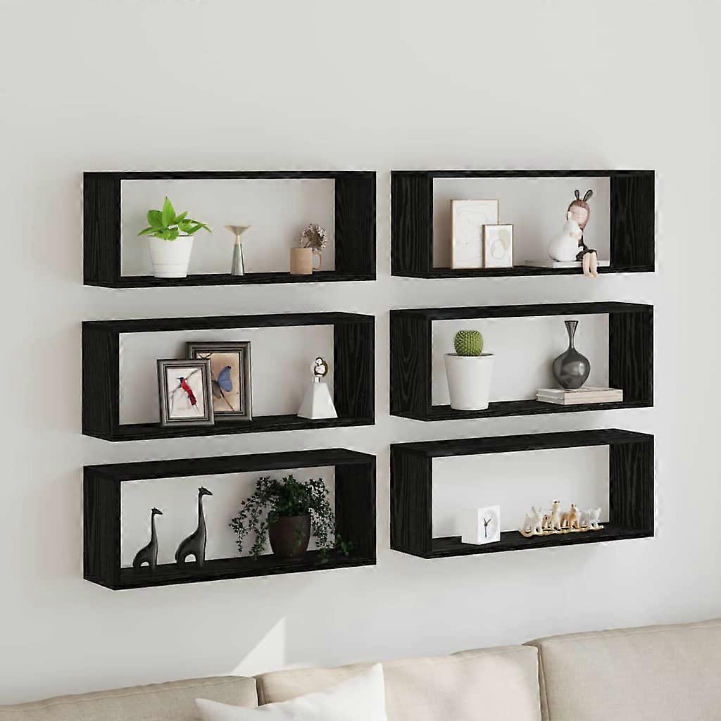 Wandregale mit Regal 6 pcs Schwarz Eichen-Optik 60 x 15 x 23 cm