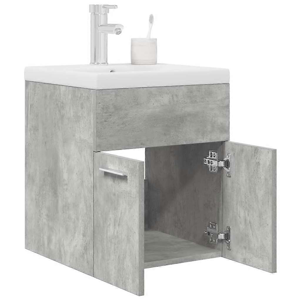 Waschbeckenunterschrank mit Einbaubecken Wasserhahn Betongrau