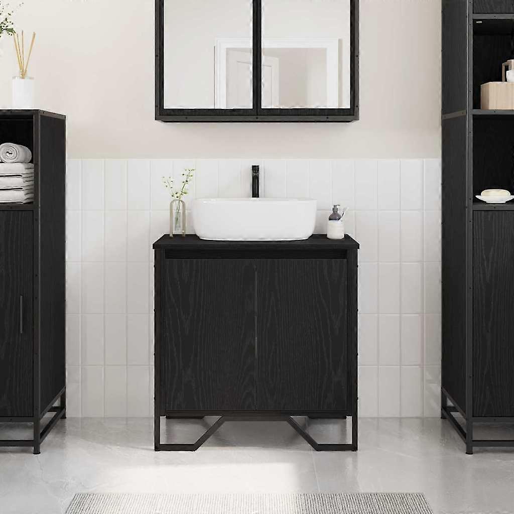 Waschbeckenschrank mit Tür Schwarz Eichen-Optik 60 x 35 x 60 cm