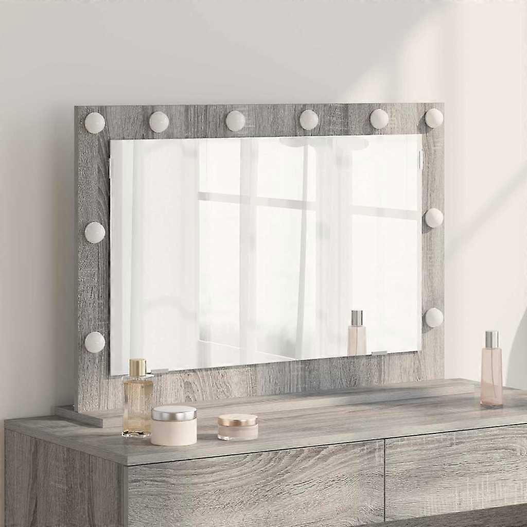 Farbe: Graues SonomaMaterial: Glas und furniertes HolzGesamtabmessungen: 80 x 55 x 18 cm (L x B x H)Form: RechtwinkligLichttyp: LED-StreifenFarbe der Lichter: Warmes WeißSpannung: 5Gewicht: 10,2 kgLanglebigNur für den InnenbereichMontage erforderlich: JaLieferumfang:1 x Kosmetikspiegel