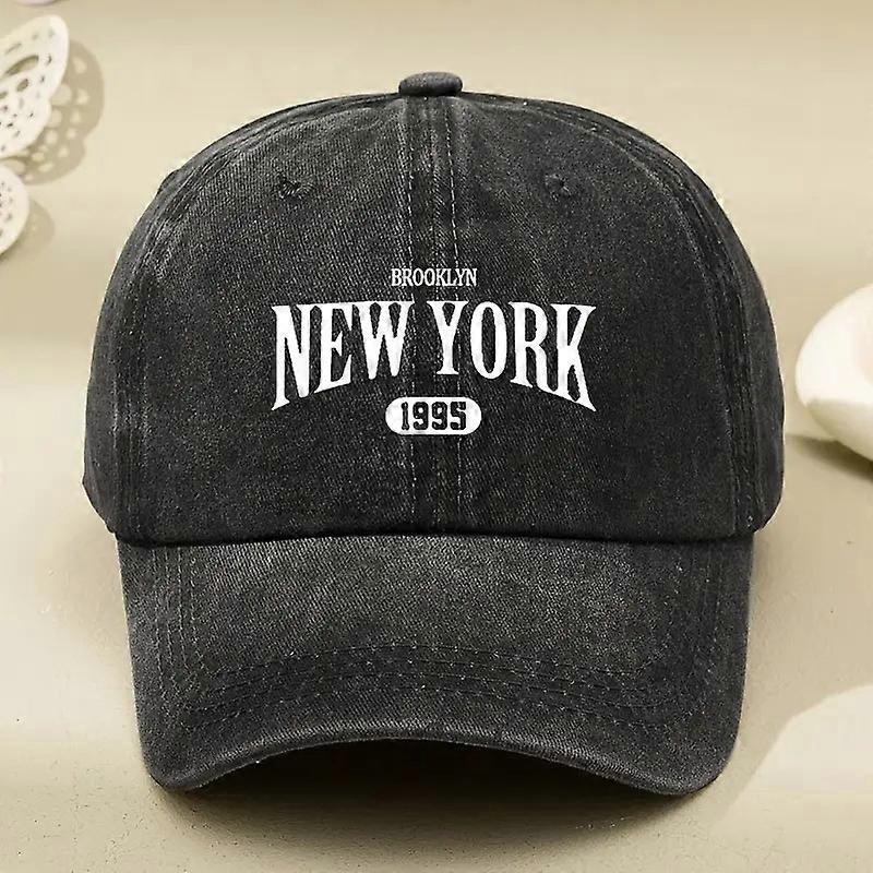Washed Black "Brooklyn New York 1995" Graphic Baseball Cap | Retro Streetwear Inspired Casual Hat