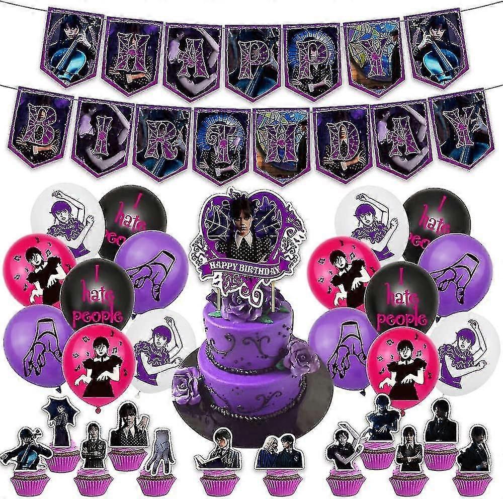 Wednesday Addams Birthday Decorations,wednesday New Addams Tv Show Party Supplies, 30pcs Wednesday Party Decorations Cake Topper