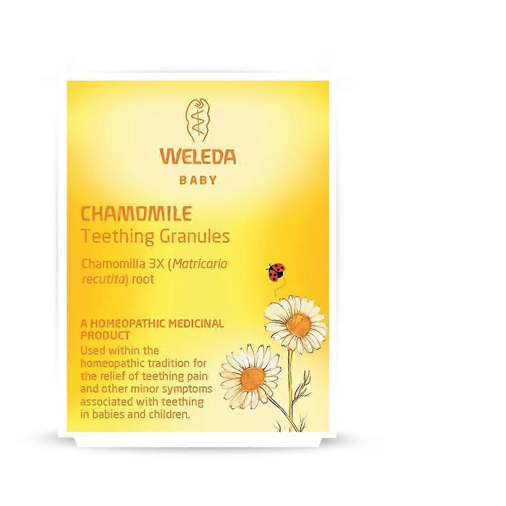 Weleda Chamomile Teething Granules provide a gentle, natural remedy designed specifically to soothe colicky pain and relieve teething discomfort in infants. Formulated with carefully selected chamomile, these granules offer calming relief to your little one during challenging teething phases. Product Benefits Made from natural chamomile, known for its soothing and calming properties. Helps alleviate colicky pain and discomfort associated with teething. Ideal for younger infants, providing a mild and effective option for early teething stages. Granules can be crushed and dissolved in boiled, cooled water, making it suitable for very small children unable to take drops. Free from artificial preservatives, colors, and flavors, ensuring a safe choice for delicate infants. Usage Instructions For very young infants, crush the granules and dissolve them in boiled, cooled water before administering. This method helps ensure ease of intake and gentle absorption. Follow the recommended dosage guidelines or consult a healthcare professional for personalized advice. Use Cases These teething granules are particularly beneficial during the early months of teething when discomfort and irritability are common. They can be used to support infants who experience colic-related pain or general fussiness linked to teething, providing natural relief without the use of harsh chemicals. Choose Weleda Chamomile Teething Granules for a trusted, gentle approach to easing your infant's teething troubles, helping them stay calm and comfortable during this important developmental stage.