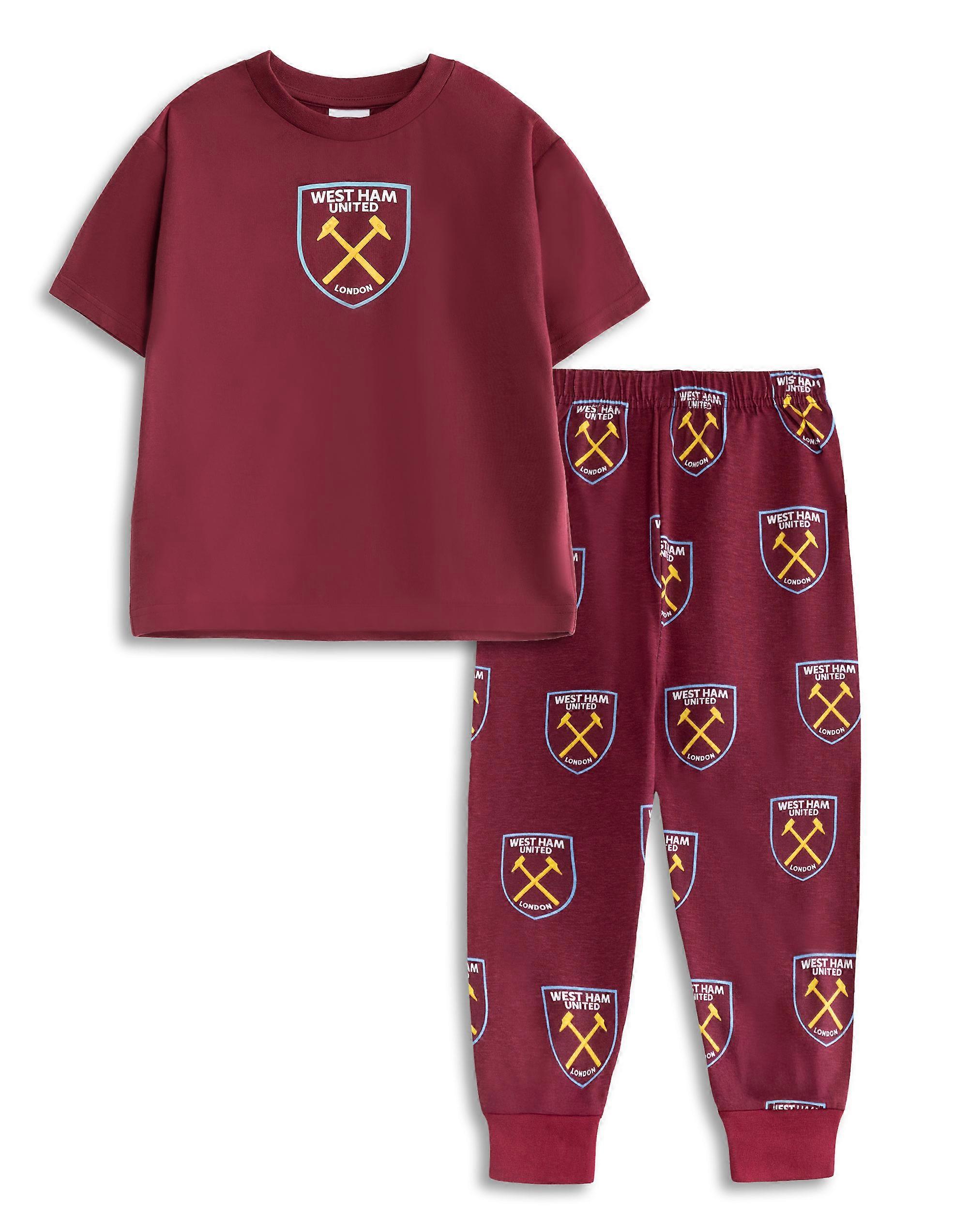 West Ham United Boys Short Sleeve Long Leg Pyjama Set Red Logo