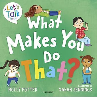 From the bestselling author of How Are You Feeling Today this thoughtful picture book teaches children how to find new ways of expressing themselves.Why am I losing my temper. Why am I acting grumpy. This important book prompts children to question certain behaviours and why they happen. Addressing common situations sympathetically and humorously What Makes You Do That answers key behavioural concerns and encourages children to selfreflect consider how their actions affect others and manage their emotions. This book is ideal for sharing with young children or to give to older children to read independently.Written in childfriendly language this great dipin book explores 12 typical behaviours that children engage in such as temper tantrums telling lies or cheating and offers 12 constructive behaviours to consider instead like how to stay calm be honest or play fairly. There are fun colourful illustrations by Sarah Jennings throughout and helpful notes for parents and carers at the back of the book with tips for supporting positive behaviour early on.Lets Talk books help you start meaningful conversations with your child. Written by an expert and covering topics like feelings relationships diversity and mental health these comforting picture books support healthy discussion right from the start.
