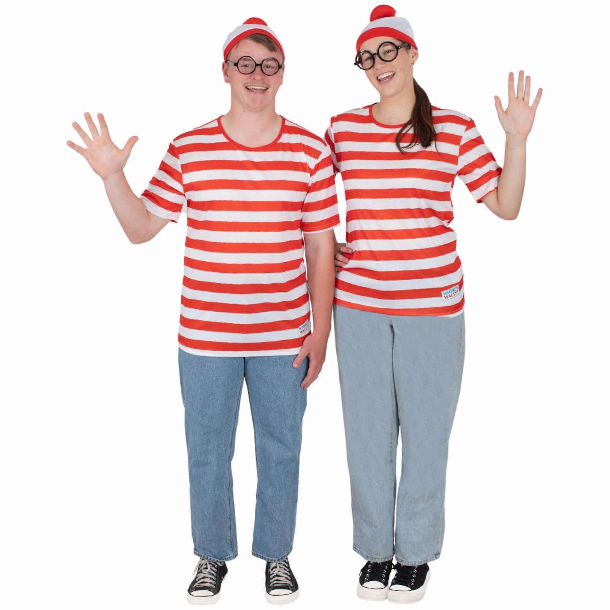 Where's Wally Waldo Hat Glasses Shirt Book Week Adult Unisex Mens Costume