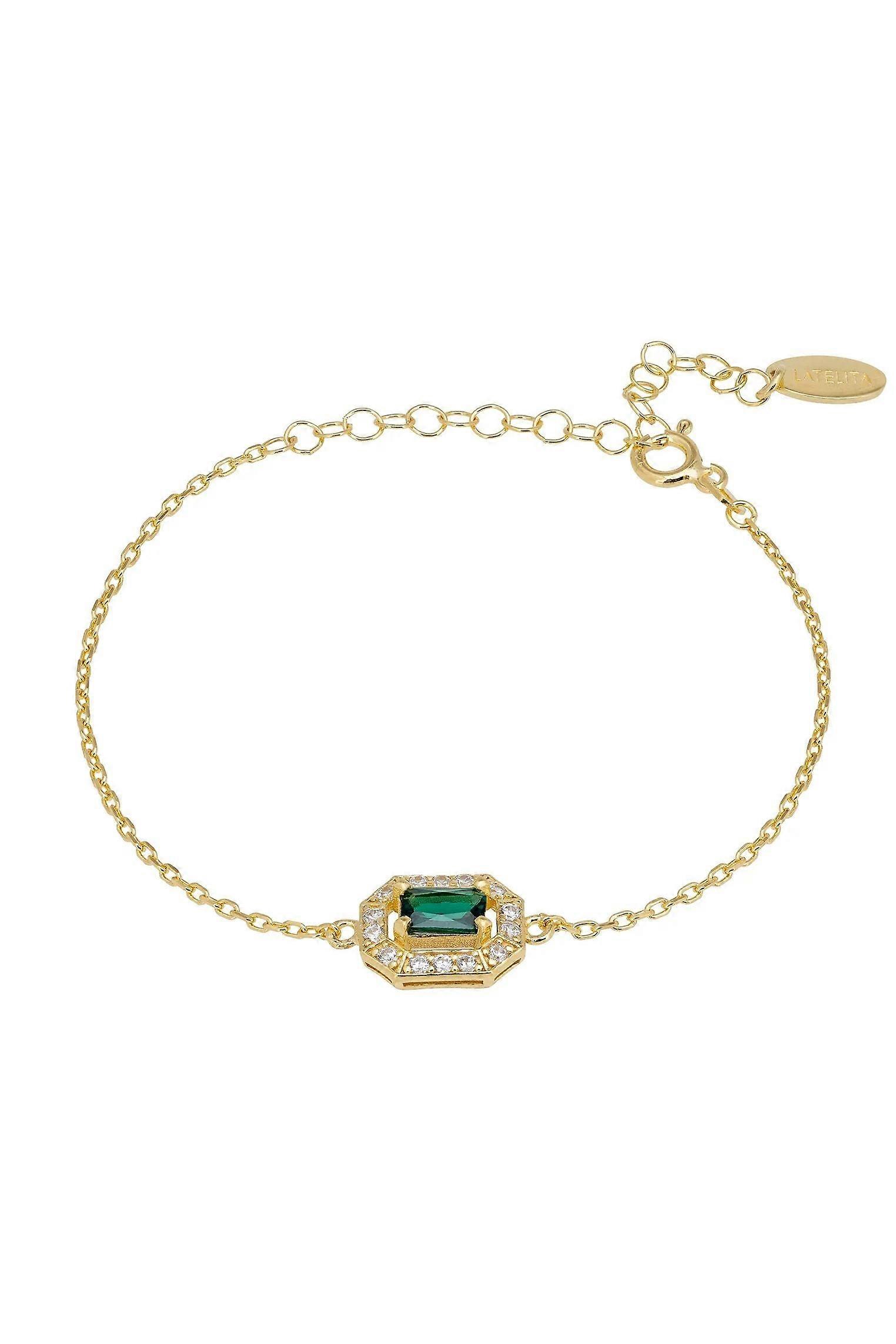 Whistledown Emerald Gold Gemstone Bracelet for Women, 925 Sterling Silver Dipped in 18ct Gold, Adjustable 15-20cm Length